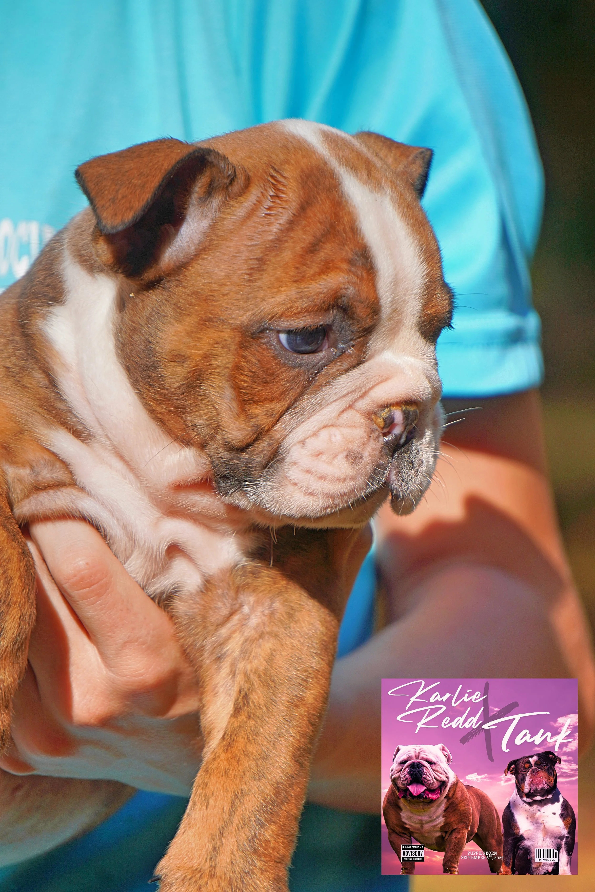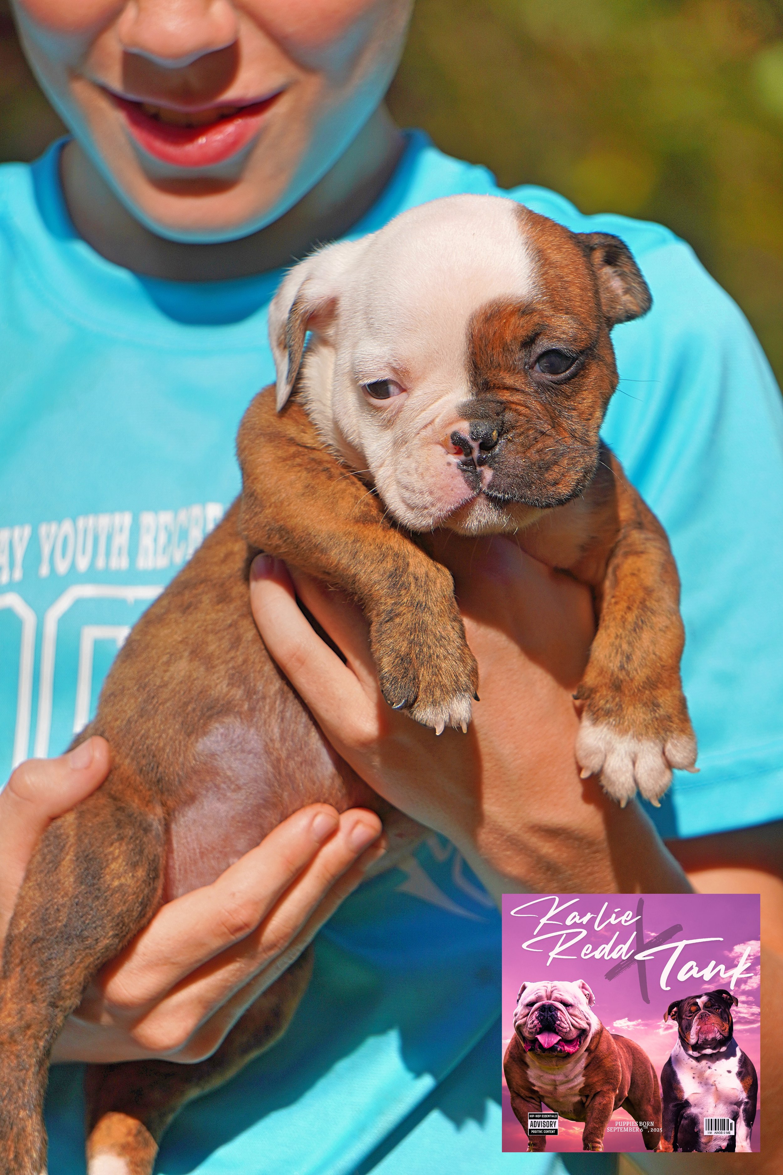 Talk about a couple of big ole’ bulldogs! Karlie Redd is easily 85-90lb female and TANK is well over 100lbs! Both have that BULLDOG face and features we all love! We hope to make some more of them both in this litter. We are likely keeping a girl back from this breeding.